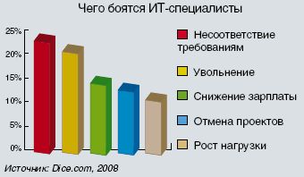 В 2008 году зарплаты ИТ-сотрудников снова значительно выросли, однако в 2009 году эта тенденция не сохранится. Большинство специалистов прогнозируют снижение компенсаций, а также сокращение штата ИТ-департамента и, как следствие, рост объема выполняемой работы. По результатам опроса, проведенного информационным ресурсом Dice, 22% респондентов выражают сомнение,