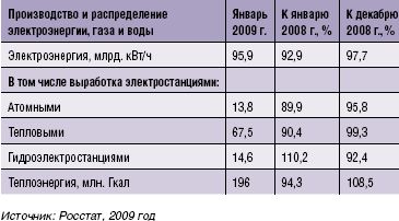Падение спроса на электроэнергию в январе более чем на 7%, обусловленное снижением энергопотребления производителями, повлечет снижение прибыли энергокомпаний, которое не будет компенсировано ростом тарифов. Тем не менее оно не окажет такого серьезного влияния на отрасль в целом, как происходящие последние несколько лет преобразования: реструктуризация и распад РАО «ЕЭС России», смена акционеров энергокомпаний, изменения законодательства.