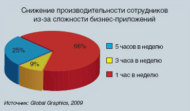 Недостаточно дружественный интерфейс бизнес-приложений обходится компаниям весьма дорого. По оценкам компании Global Graphics, в масштабах стран речь идет о десятках миллиардов долларов. Например, в Австралии на сложность использования программных продуктов жалуются 69% офисных сотрудников. Две трети из них оценивают потери своего рабочего времени, связанные с неадекватностью ПО, не менее чем час в неделю, а 25% говорят о пяти потерянных часах. Главными проблемами называются избыточная функциональность и недостаточное обучение. Как подчеркивают эксперты, разработчикам бизнес-приложений есть чему поучиться у производителей пользовательских продуктов. Например, те же самые сотрудники, которые жалуются на сложность «рабочих» программных инструментов, без всякого обучения способны проводить время в социальных сетях. Эта простота использования должна быть взята на вооружение при создании корпоративного ПО.