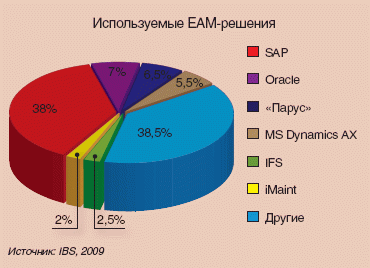 Специализированные информационные системы, направленные на управление основными фондами (например, Maximo, Datastream, Mincom и iMaint), практически не известны в России. Отечественные предприятия лидирующими решениями признают SAP ERP, Oracle E-Business Suite и Microsoft Dynamics AX. За ними следуют специализированные разработки российских фирм. Проникновение систем ЕАМ в разных отраслях неравномерно. Лидерами являются нефтегазовая отрасль и цветная металлургия: около половины крупных предприятий используют средства автоматизации, причем в основном это соответствующий модуль ERP-системы. В машиностроении же автоматизация процессов технического обслуживания и EAM практически не используется.