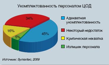Половина ИТ-руководителей жалуется на нехватку сотрудников в корпоративных центрах обработки данных. Согласно результатам опроса, проведенного по заказу Symantec, 16% респондентов утверждает, что в их ЦОД существует крайняя нехватка работников. Еще 34% сообщило о «некотором» недостатке. Большинство ИТ-директоров отмечает, что им трудно найти деньги и достаточное количество квалифицированных кандидатов, чтобы поддерживать персонал ЦОД на должном уровне. Тем не менее 45% сообщило, что в их корпоративных информационных центрах достаточно сотрудников, а еще 5% — что их слишком много. Сокращение персонала ЦОД в 2009 году было проведено в 31% компаний. Помимо этого, почти в половине организаций была повышена загрузка сотрудников после их обучения смежным дисциплинам. С нехваткой персонала компании борются с помощью автоматизации рутинных операций, виртуализации и консолидации серверов, а также используя облачные вычисления и аутсорсинг.