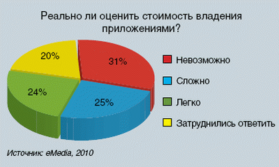 Как оказалось, многие организации не до конца понимают потенциал своей ИТ-инфраструктуры. Как выяснилось в ходе опроса, проведенного eMedia, сложнее всего для большинства ИТ-менеджеров определить, как часто то или иное приложение используется в компании: 54% опрошенных могут дать эту информацию, но не без труда, а 22% сочли эту задачу крайне сложной или вообще невыполнимой. Проблемой является и оценка подлинной стоимости внедрения приложения. Особенно это касается крупных компаний, где данный вопрос сочли сложным три четверти опрошенных менеджеров.