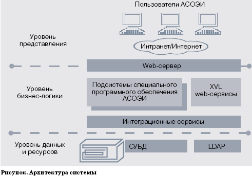 Для обеспечения функционирования автоматизированной системы управления рисками, исходя из особенностей организационной структуры компании и ее бизнес-процессов, было принято решение создать систему с трехуровневой архитектурой на базе Web-технологий (см. рисунок). Она предполагает наличие клиентского приложения (презентационный уровень), подключенного к серверу приложений (уровень бизнес-логики), который, в свою очередь, подключен к серверу базы данных (уровень данных и ресурсов).