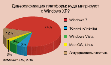 Важность инвестиций в инфраструктурное ПО предопределяется и тенденцией к диверсификации платформ. Во-первых, происходит массовая миграция компаний с Windows XP на Windows 7. Во-вторых, традиционные системы будут дополняться альтернативными решениями и тонкими клиентами. Наконец, наблюдается растущая функциональность и роль мобильных устройств. Они потеснят ПК с доминирующих позиций.
