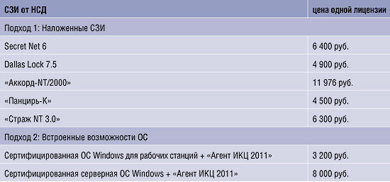 Второй подход кажется логичным: почему бы не использовать встроенные возможности ОС? Тем более что компания Microsoft сертифицировала свои основные ОС как СЗИ (в подавляющем числе средних и малых организаций в России используются ОС от Microsoft, однако и любители UNIX имеют шанс подобрать сертифицированный аналог используемых ОС — число их постоянно растет). Сертифицированные сборки Microsoft принципиально ничем не отличаются от обычных версий, и администраторам не придется осваивать новые системы. Недостатка у данного подхода также два: необходимость в ряде случаев переустановки ОС с сертифицированного дистрибутива и отсутствие подсистемы контроля целостности.