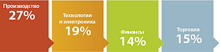 Отрасли, наиболее агрессивно движущиеся в сторону облачной модели, включают производство, ИТ и потребительскую электронику, а также финансовый сектор и торговлю. Они не просто думают о возможностях облачной модели, но и активно исследуют ее как свою будущую ИТ-платформу.