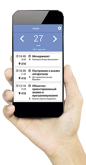 Важной частью системы планирования расписаний стало разработанное для нее мобильное приложение. Оно позволяет отслеживать в режиме реального времени индивидуальную «образовательную траекторию движения» студента – его персональное расписание.