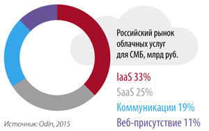 Аналитики разделяют рынок облачных сервисов на четыре сегмента. На первом месте по-прежнему остаются услуги аренды инфраструктуры (IaaS). Объем IaaS-рынка в 2015 году почти в два раза превысил ранее сделанные прогнозы и составил 33 млрд руб.