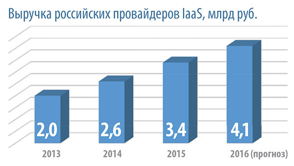 Объем российского рынка IaaS в 2015 году составил 3,4 млрд руб., на 31% превысив показатель 2014 года. По данным J'son & Partners Consulting, услугами IaaS российских провайдеров пользовались около 28 тыс. компаний.