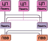 Маршрутизаторы объединяются в сеть, которая представляет из себя коммуникационную артерию, передающую данные между процессорными узлами, модулями ввода-вывода, а также от первых ко вторым и обратно. Обмен данными между микропроцессорами и RAM осуществляется локально процессорными узлами.