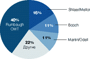 Продажи объектно-ориентированных методов анализаи проектирования в 1994 году (в разбивке по методологиям) |