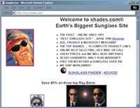 "Мы считали необходимым обзавестись хорошим именем домена, - заметил Адлер, - и купили имя shades.com, потому что оно достаточно ясно отражает характер нашей деятельности. Когда в 1991 году в сети CompuServe был создан узел Shades.com, он стал единственным сервером, посвященным солнечным очкам. У нас не было конкурентов. Сегодня поисковый механизм Internet выдает несколько сотен точек входа. Хотя, конечно, многие из них повторяются, и реально существует около 20 узлов".
