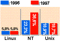 Эту точку зрения полностью разделяет аналитик компании Zona Research Мартин Маршалл. «Одна из главных особенностей Linux, которая привлекает к ней таких крупных производителей, как Oracle, IBM и Netscape, - отсутствие на ней имени Microsoft, - подчеркнул Маршалл. - Oracle заинтересована в том, чтобы охладить симпатии пользователей к Microsoft. ОС Linux представляет собой реальную альтернативу Windows NT и позволяет пользователям отказаться от многих продуктов Microsoft».