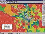 Более разнообразными стали возможности представления карт. Выделение отдельных элементов карты, а также построение графиков осуществляется путем определения соответствующих тем. С помощью средства Thematic Mapping Wizard, входящего в состав MapInfo Professional, можно быстро задать нужные условия и выделить цветом какие-либо области карты. В зависимости от этих условий отдельным элементам карты присваиваются определенные цвета и графические символы. Средство Graduated Symbols позволяет одновременно просматривать более одного поля для каждой записи.