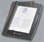 Корпус Softbook отделан кожей. Толщина устройства - около 2,5 см. По размерам оно примерно соответствует листу бумаги формата А4, а вес составляет чуть меньше полутора килограммов. Дизайн Softbook мне очень понравился: на устройство приятно смотреть, с ним приятно работать. Softbook снабжен сенсорным ЖК-экраном с внутренней подсветкой, который занимает около двух третей площади устройства. Имеются также три кнопки, кнопка для пролистывания страниц и перо. Кроме того, устройство снабжено ручками подстройки яркости и контрастности и встроенным модемом на 33,6 Кбит/с.