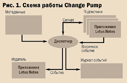 Change Pump помогает разработчику отделить документы, которые нужно изменить, от справочников, распространяющих изменения. Изменение справочника передается диспетчеру, который порождает соответствующие сигналы для всех связанных систем.