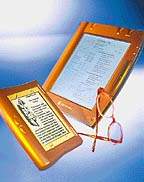 На той же выставке компания NuvoMedia представила новые возможности выпускаемого ею планшета Rocket eBook, размеры которого - 12,5х18,75х3,75 см, а вес - около 620 грамм.