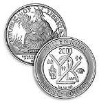 Может быть, ее мучает проблема 2000 года, или она просто устала. Но мадам Свобода, изображенная на обратной стороне первой монеты, посвященной 2000 году, изображена сидя. Стоит такая монета всего 49,5 долл. Эта 20-долларовая серебряная монетка выпущена в Либерии. Всего будет выпущено девять различных монет того же достоинства с различными античными символами