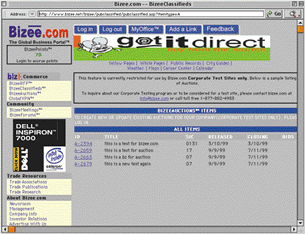 Кроме того, узел Bizee.com будет поддерживать возможности размещения запросов, в частности, на компьютерные продукты и услуги; а также проведения аукционов, на которых предприятия смогут приобретать определенные продукты и услуги.