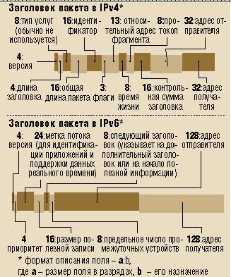 С использованием IPv6 размер адресного пространства значительно увеличивается: теперь доступны 340 триллионов триллионов триллионов адресов. Однако несмотря на увеличение адресного пространства, заголовки пакетов - существенная часть каждого компонента пересылаемой информации, где указывается источник данных, адресат и т. д. — станут значительно меньше. |