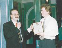 | Валерий Трусов (слева) вручает сертификат «За вклад в развитие бизнеса Verbatim в России» коммерческому директору компании К.Э.Т. Владимиру Черномашенцеву |