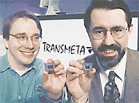 | Линус Торвалдс и глава Transmeta Дэвид Дитцел с новыми процессорами Crusoe 3400 и 5400 |