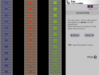 | Впервые заходя на узел электронной коммерции, поддерживающий технологию True Internet Color, вы заносите в специальную форму сведения об аппаратуре, влияющей на цветопередачу |