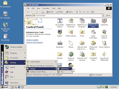 | В целом интерфейс Windows 2000 не претерпел существенных изменений — панель управления обогащена возможностями; из меню Start стало проще удалять ненужные позиции |