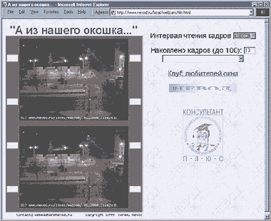 | Еще одна интересная затея «Терема» — Web-камера, транслирующая в Internet происходящее на одной из площадей города. Лучше один раз увидеть на http://www.nevod.ru/local/webcam/film.html |