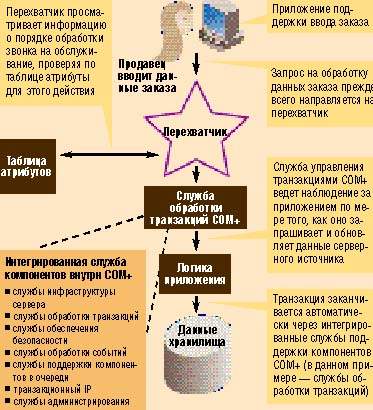 Компоненты COM+ могут изменить поведение приложения на лету путем проверки каждого действия по таблице атрибутов, как в этом примере с обработкой заказов. Архитектура значительно снижает нагрузку на разработчика при создании новых приложений.