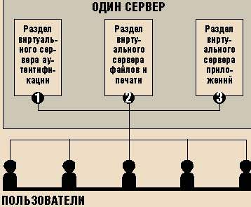 Вне зависимости от того, является ли разбиение сервера логическим или физическим, оно позволяет одной машине действовать как несколько независимых систем. Такая конфигурация упрощает работу сетевых администраторов, позволяет более эффективно расходовать сетевые ресурсы