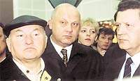 | Посещавшего выставку мэра Москвы Юрия Лужкова (слева) всюду видели в сопровождении президента холдинга Александра Гончарука (в центре), а сам градоначальник проявил наибольший интерес к экспозиции компании «Мобильные ТелеСистемы» |