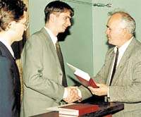 Хорошим примером сотрудничества вуза с крупной фирмой стал конкурс бизнес-планов инновационных научно-технических проектов, проведенный компанией Stins Coman в МГТУ им. Баумана в период с декабря прошлого года по апрель нынешнего. За этот срок студентам и аспирантам университета предлагалось разработать бизнес-план какой-нибудь идеи, способной заинтересовать потенциального инвестора. На прошедшей 15 июня пресс-конференции, посвященной подведению итогов конкурса, Сашик Мартиросян, ректор Академии информационных систем Stins Coman, отметил, что всего было подано более 30 проектов. После детального знакомства с каждым из них жюри приняло решение первое и второе места не присуждать. А лучшая из представленных работ получила награду, предназначавшуюся для третьего места, — грант в размере 5 тыс. рублей. Еще девять работ принесли своим авторам годовые стипендии — по 3600 рублей ежемесячно.