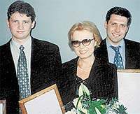 | Победный пьедестал: (слева направо) Андрей Дунин («Копи Компани»), Ольга Николаева («РУПКор») и Валентин Вавилов («Стартмастер») |
