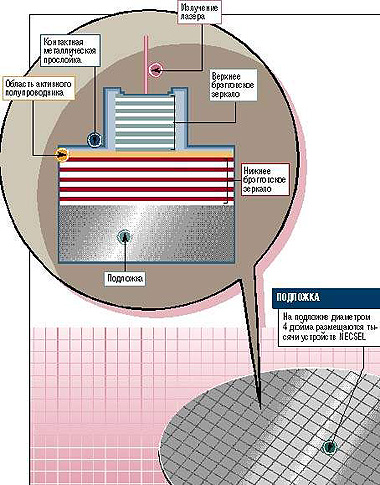 Инженеры молодой компании Novalux разработали новую лазерную технологию Novalux Extended Cavity Surface Emitting Laser (NECSEL), позволяющую существенно увеличить объемы трафика в волоконно-оптических сетях и снизить стоимость его пересылки. Информация о появлении подобных решений — бальзам на душу представителей зарождающейся отрасли, оборот которой за последний год вырос на 40%. Лазерный луч начинает все шире применяться при организации беспроводной связи и для вывода на экран телевизионного изображения.