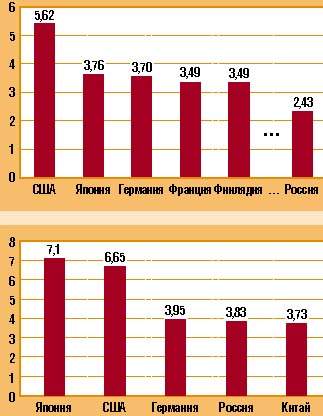 Первое место в индексе занимают Соединенные Штаты; за ними идут Япония, Германия, Франция, Финляндия, Канада и Англия. На нижних строчках индекса располагаются ЮАР, Венесуэла, Словения, Таиланд и Индонезия.