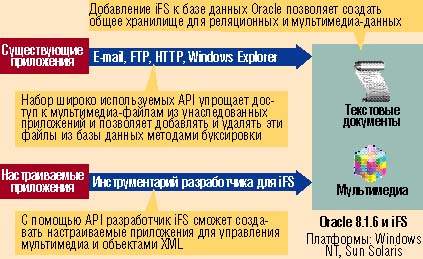 Вот здесь-то на сцену и выходят IBM Data Links и Oracle internet File System (iFS). Оба этих продукта предлагают дружественный интерфейс для хранения мультимедийных файлов при заботливой поддержке специализированных механизмов СУБД.