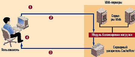 Серверный ускоритель CacheFlow устанавливается перед Web-сервером для выполнения обработки запросов на информационное наполнение, тем самым исключая Web-серверы из цикла поддержки информационного наполнения, сокращая уровень рабочей нагрузки и увеличивая производительность узла