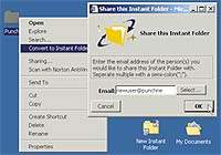 Instant Folders дает возможность пользователям Windows 2000 отбирать на жестком диске своего компьютера папки, доступ к которым смогут получать и другие клиенты той же самой службы; при этом не нужно будет вручную обновлять файлы на Web-сайте. Модуль размером 53 Кбайт в соответствии с определенным расписанием производит синхронизацию файлов между клиентом и сервером. Новые файлы выгружаются на сервер целиком, в то время как в уже существующие файлы вносятся только изменения, что позволяет существенно сократить необходимую полосу пропускания. Аналогичный процесс применяется для проверки новых или модифицированных файлов на серверном уровне.
