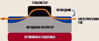Микросхемы типа кремний на изоляторе (SOI — silicon-on- insulator) изготавливаются со слоем диоксида кремния, который отделяет каждый транзистор от находящейся под ним кремниевой подложки.