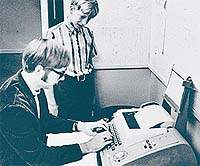 | Пол Аллен и Билл Гейтс за телетайпом ASR-33 в компьютерном зале школы Lakeside School в Сиэтле. 1968 год |