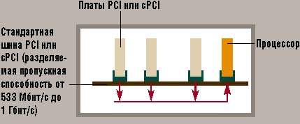 1. Платы в случае стандартной шины PCI или cPCI «конкурируют» за общую полосу пропускания