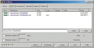 | Если запустить поиск песни, содержащей слово rare pictures of butterflies, то инфицированный компьютер вернет в качестве ответа на запрос файл rare pictures of butterflies.exe |
