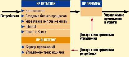 В основе предоставляемых средств лежит пакет HP Netaction, качественно новая система инструментальных — в широком смысле — программных средств, полученная объединением новых для Hewlett-Packard и известных ранее, но получивших усовершенствование инструментов, и значительно обновленная система HP OpenView.