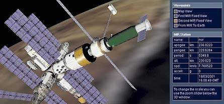 Благодаря lenta.ru мы набрели на открытый компанией ParallelGraphics сайт The End of MIR, позволяющий нам проследить за последними днями российской космической станции вплоть до 23 марта, когда «Мир» сойдет с орбиты и начнет гореть в земной атмосфере. На сайте представлено VRML-изображение «Мира» в реальном времени с разных точек зрения, в том числе вид с «Мира» на Землю. Предполагается, что The End of MIR останется в Рунете и после 23 марта.