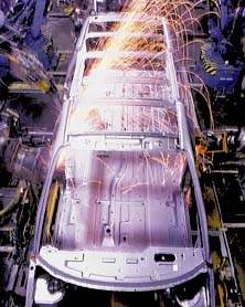 | Ожидается, что на интерактивной торговой площадке производителей автомобилей будет заключаться договоров на покупку сырья и запчастей в размере 240 млрд. долл. в год. Именно этот канал обеспечит их поступления на сборочные линии автомобильных компаний, входящих в Большую тройку, например, на этот конвейр завода DaimlerChrysler в Сент-Луисе |