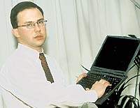 | Григорий Низовский демонстрирует, что с TravelMate 350 можно работать в любой ситуации |