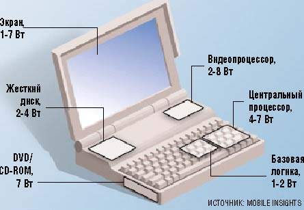 Процессор портативного компьютера — вовсе не единственный потребитель питания от батарей