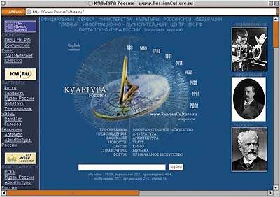 Министерство культуры РФ, его Главный информационно-вычислительный центр и Британский совет объявили об открытии Internet-портала «Культура России»: www.RussianCulture.ru. Впрочем, по заверениям разработчиков портала — компании «Интернет» и «Российской сети культурного наследия», представленный сервер является только пилотным проектом. А поскольку проект некоммерческий, то время превращения его в официальный портал «Культуры России» не определено. Однако это не помешало Михаилу Швыдкому, министру культуры РФ, объявить о «систематизации банков данных различных сегментов культуры» и «изменении информационного обеспечения учреждений культуры». В заключение своей поздравительной речи министр сказал, что ГИВЦ Министерства культуры будет реорганизован в Центр новых информационных технологий в культуре.