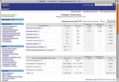 Следует отметить, что основными преимуществами SpyLOG Analyzer по сравнению с западными анализаторами системных журналов являются учет особенностей национальных поисковых систем и каталогов, использование географической базы данных по IP-адресам и невысокая стоимость. Правда, пока SpyLOG Analyzer работает только с форматом системного журнала, используемого Web-сервером Apache, однако именно этим Web-сервером под управлением операционной системы FreeBSD пользуется около 95% клиентов «Демоса». Остальные работают либо в операционной среде Sun Solaris, либо в Windows NT с Microsoft IIS.